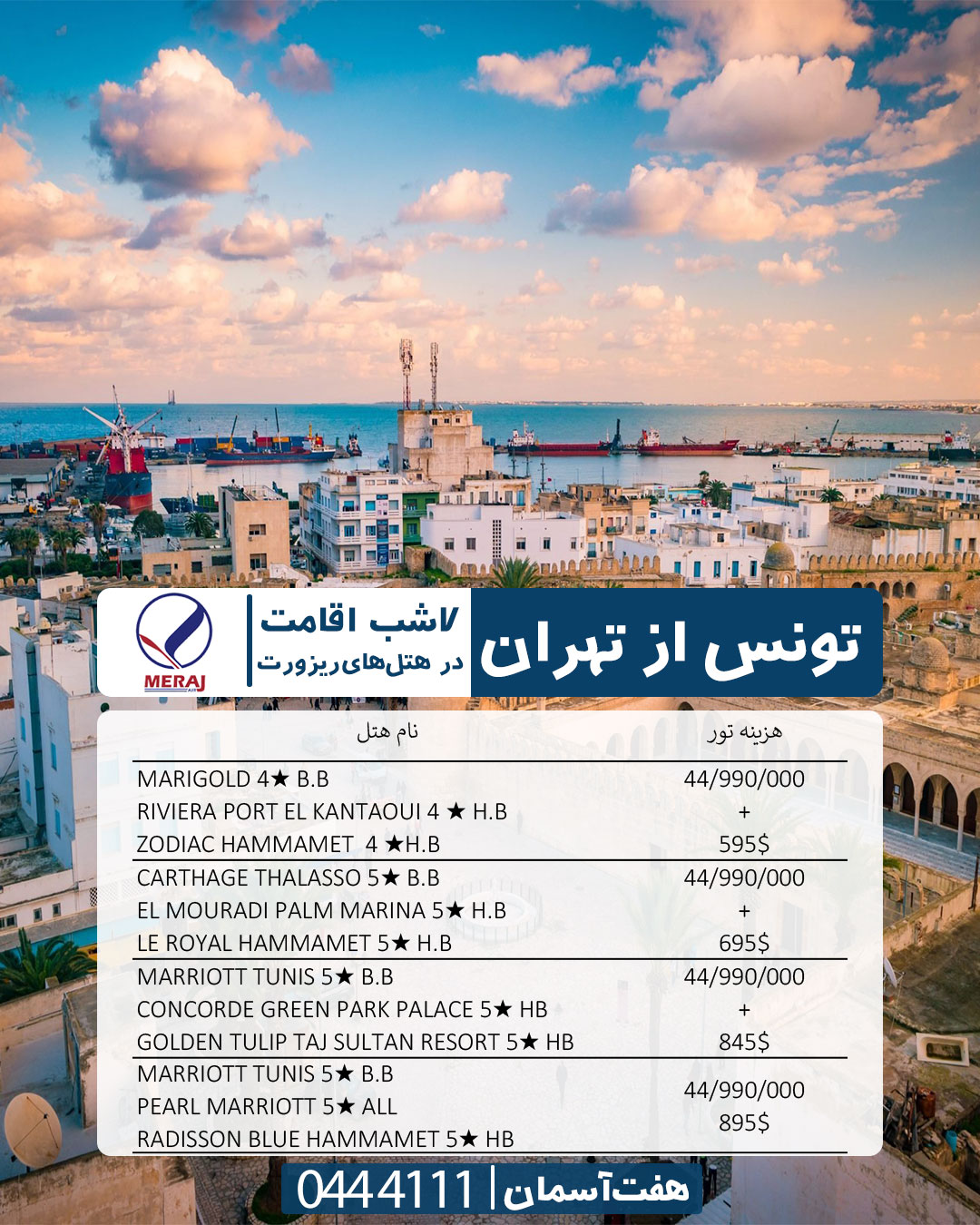 -پرواز مستقیم به فرودگاه اصلی شهر تونس ایرباس مدرن ۶۰۰_۳۰۰ معراج