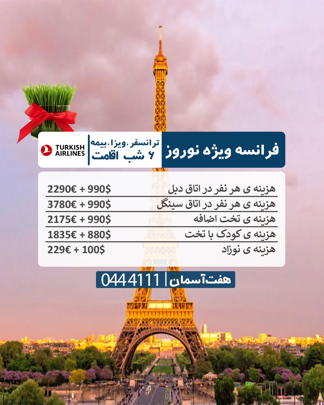 هزینه ی تور هر نفر در اتاق دو تخته: 2290 یورو + 990 دلار هزینه ی پرواز